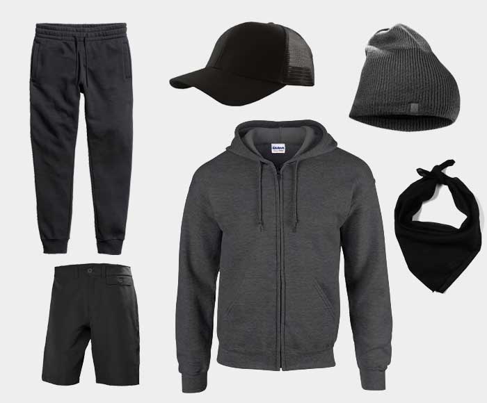 We also provide hooded sweat shirts, toques, hats, shorts, pants and bandannas.